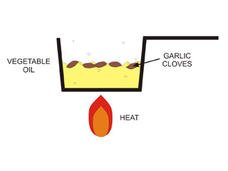 Step 6 | In a separate saucepan, heat up vegetable oil and throw in some garlic cloves. | ||